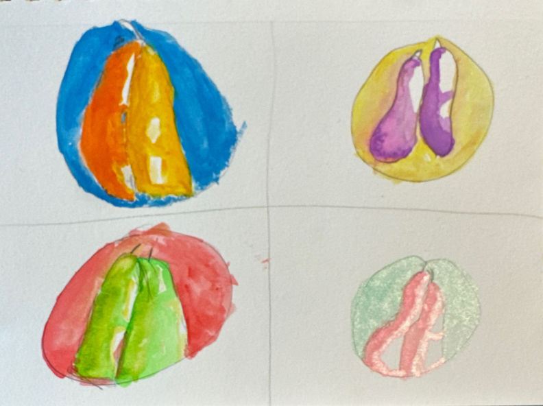 I did a demo on painting fruit and creating complementary color neutrals for the shading for all ages. These turned out so beautifully from ages six to seventeen. I hope many learners put them in our new Branches Learning Art Gallery. Our 3-D paper art project also turned up a myriad of diverse art pieces!